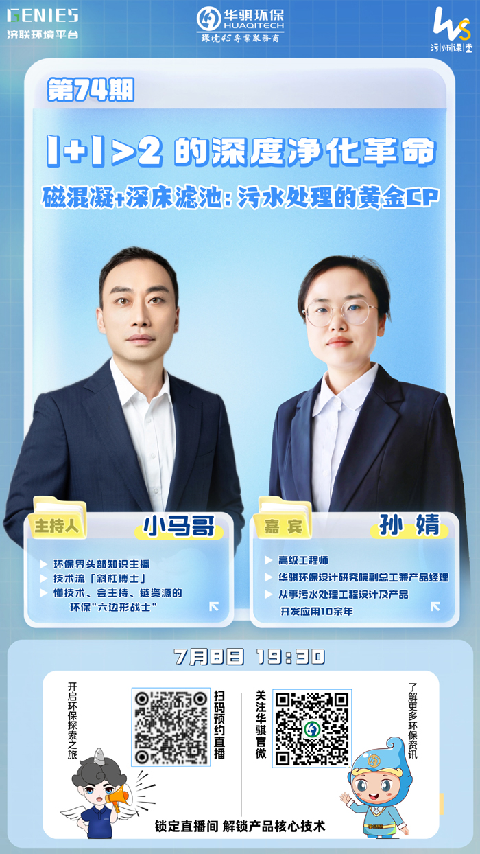 預(yù)告!7月8日19:30 | 直播:1+1大于2的深度凈化革命 磁混凝+深床濾池:污水處理的黃金CP