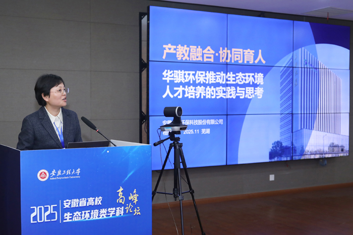 11月14日-15日,由安徽省普通本科高校環(huán)境類專業(yè)合作委員會主辦、安徽工程大學(xué)承辦、安徽華騏環(huán)??萍脊煞萦邢薰緟⑴c協(xié)辦的2025年安徽省高校生態(tài)環(huán)境類學(xué)科高峰論壇暨2025 年“華騏-藍必盛杯”安徽省大學(xué)生生態(tài)環(huán)境創(chuàng)新創(chuàng)業(yè)大賽決賽成功舉辦。同濟大學(xué)徐祖信院士、中國科學(xué)技術(shù)大學(xué)俞漢青院士分別在線上及現(xiàn)場作了主題報告。華騏環(huán)保副總裁程曉玲代表公司出席活動。
