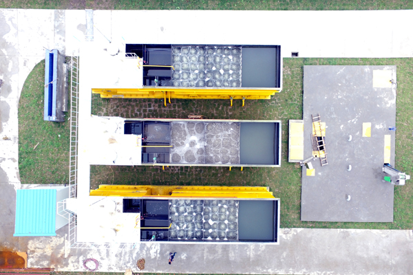 “高效仿生水草污水處理平臺(tái)”是針對(duì)鄉(xiāng)鎮(zhèn)、農(nóng)村等中小型污水處理項(xiàng)目開發(fā)的,是脫氮除磷村鎮(zhèn)污水處理專利技術(shù)(專利號(hào)ZL201310179893.6)的良好應(yīng)用。該平臺(tái)改變了現(xiàn)有很多小型生活污水處理裝置雖然結(jié)構(gòu)上實(shí)現(xiàn)了一體化,但附屬設(shè)備多、結(jié)構(gòu)不緊湊、抗沖擊負(fù)荷差等缺點(diǎn)。