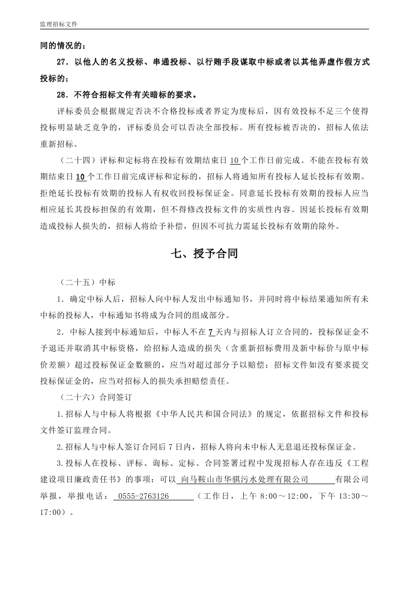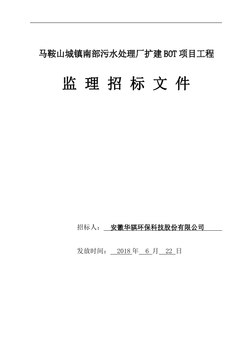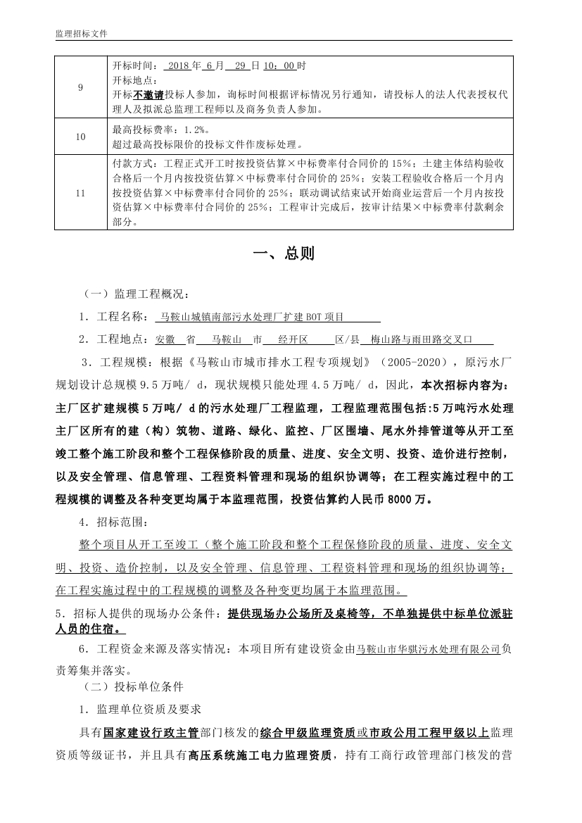 馬鞍山城鎮(zhèn)南部污水處理廠擴建BOT項目工程監(jiān)理招標文件