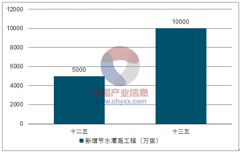 建設(shè)面積方面,根據(jù)國家農(nóng)業(yè)節(jié)水綱要(2012-2020)的規(guī)劃,到2020年全國農(nóng)田有效灌溉面積達(dá)到10億畝,新增節(jié)水灌溉工程面積3億畝,其中新增高效節(jié)水灌溉工程面積1.5億畝以上。“十三五”期間,國家將新增高效節(jié)水灌溉面積1億畝,較“十二五”期間新增5000萬畝量翻一倍。