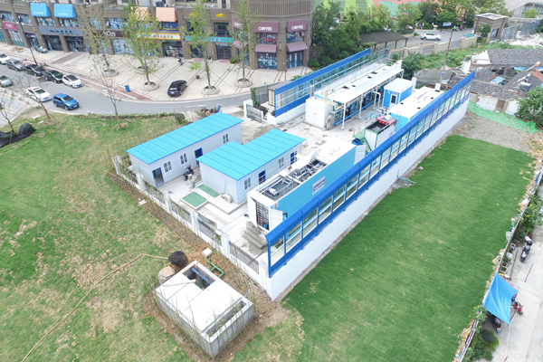 南京市浦口區(qū)南河流域凈水活水工程林公堤站點,處理規(guī)模2000m3/d,采用我司研發(fā)的Rapid-Move黑臭水體旁路處理系統(tǒng)——“魔方磁+魔方尊”組合工藝產品,從城南河西支沿河污水井和場站西側污水排口取水,提升至場站處理凈化達標后補水至上游西門橋處,作為河道補水水源。出水主要指標達到《地表水環(huán)境質量標準》(GB3838-2002)Ⅴ類水標準,其中氨氮達到IV類水標準。