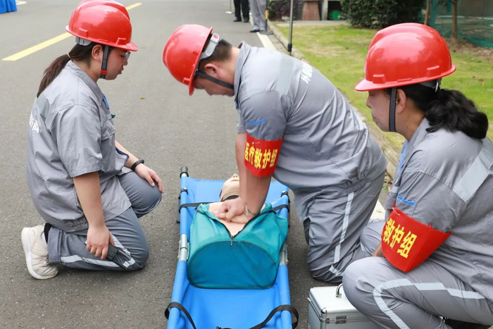 當(dāng)天下午2點(diǎn),演練正式開始。演練場(chǎng)景模擬華騏污水廠磁混凝沉淀池污泥泵房?jī)?nèi)員工在處理污泥泵出口壓力不正常過(guò)程中,未遵守作業(yè)規(guī)程,違規(guī)摘掉正壓送風(fēng)長(zhǎng)管呼吸器,吸入有毒氣體后中毒暈倒?,F(xiàn)場(chǎng)人員發(fā)現(xiàn)后立即上報(bào)公司領(lǐng)導(dǎo),經(jīng)理趕赴事故發(fā)生區(qū)域,成立現(xiàn)場(chǎng)指揮部,啟動(dòng)《有限空間作業(yè)事故專項(xiàng)應(yīng)急預(yù)案》,應(yīng)急救援人員穿戴正壓式空氣呼吸器,攜帶擔(dān)架深入污泥泵房將受傷人員救出;醫(yī)療救護(hù)人員對(duì)中毒人員進(jìn)行心肺復(fù)蘇,救援的同時(shí)撥打 120 急救電話進(jìn)行醫(yī)療救護(hù)求助。最終在各單位的全力配合下,圓滿完成此次應(yīng)急救援任務(wù)。