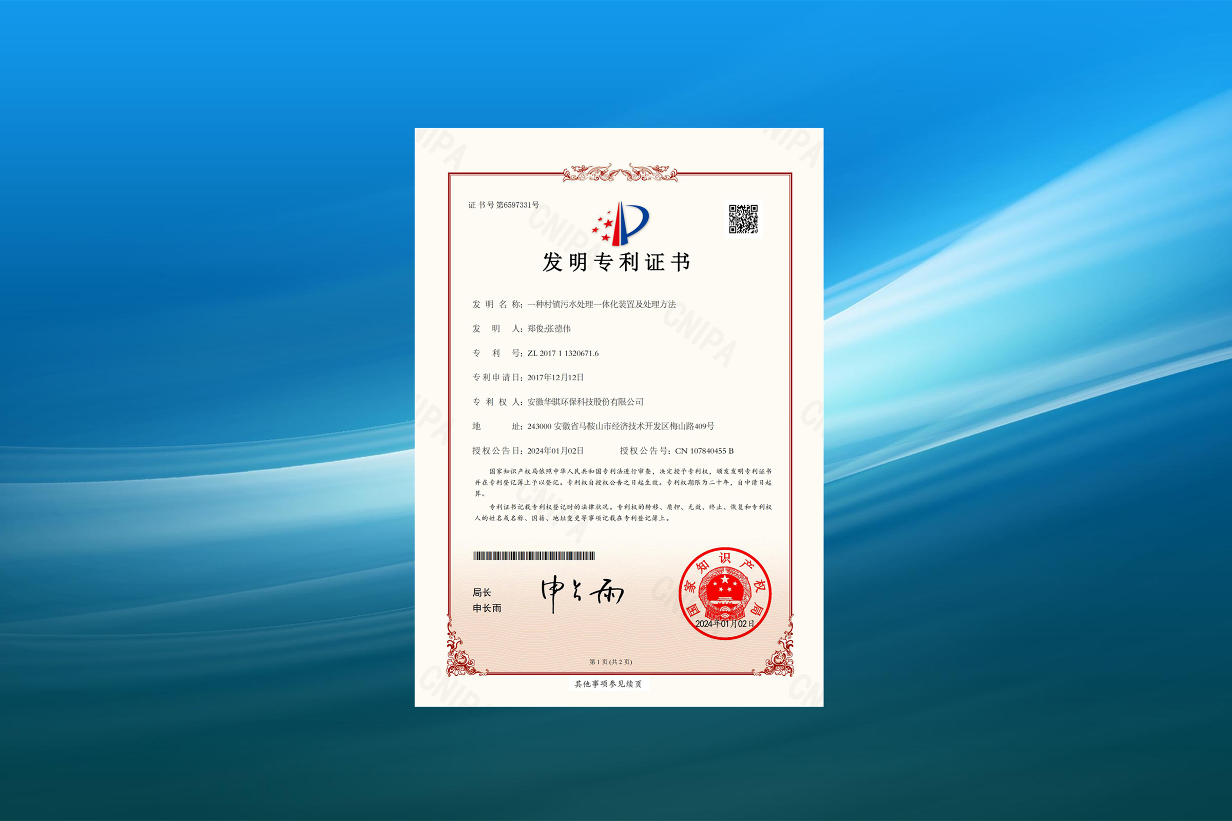 據(jù)國家知識(shí)產(chǎn)權(quán)局公告,安徽華騏環(huán)??萍脊煞萦邢薰救〉靡豁?xiàng)名為“一種村鎮(zhèn)污水處理一體化裝置及處理方法”發(fā)明專利,授權(quán)公告號(hào)CN107840455B。專利摘要顯示,本發(fā)明公開了…